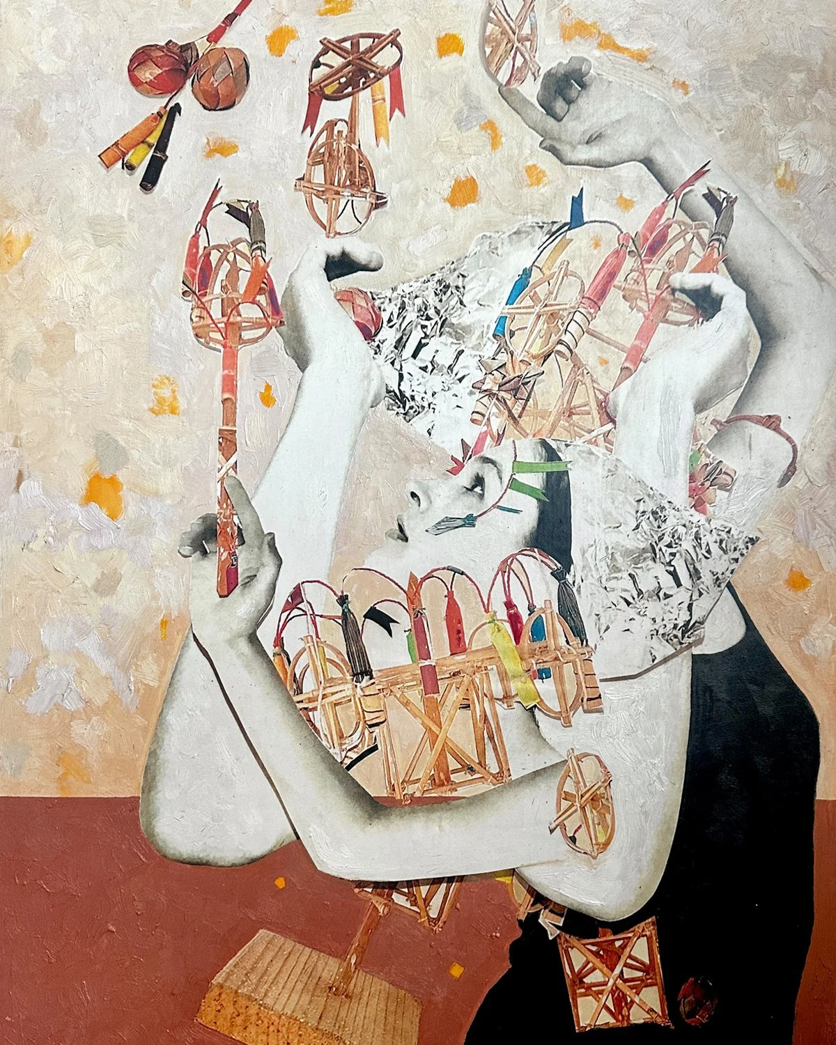 Ophelia Cornet’s lifelong passion for photography and oil painting has developed into a distinctive style pairing the two mediums, a technique she calls Fotura (fotografía y pintura). This multi-step process involves posing and photographing models; printing, cutting, and assembling images; and applying layers of plaster and paint to actualize the vision. In moving from real images to surreal compositions, this work suggests our innate ability to transmute the mundane into something alive and inspired.